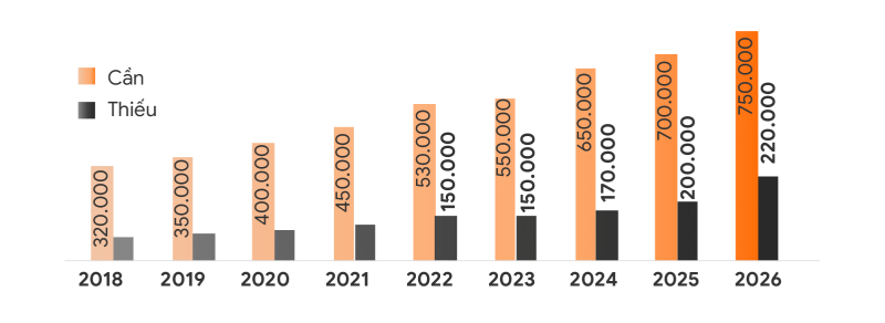 Sự phát triển nhanh chóng của thị trường công nghệ không chỉ mở ra nhiều cơ hội việc làm mà còn đặt ra những thách thức lớn đối với các doanh nghiệp. Một trong những thách thức đáng kể là sự thiếu hụt nguồn nhân lực có kỹ năng chuyên môn sâu. Theo số liệu từ Bộ Thông tin và Truyền thông, thị trường IT Việt Nam cần bổ sung ít nhất 500.000 lao động công nghệ từ nay đến năm 2025 để đáp ứng nhu cầu. Điều này đặt ra yêu cầu cấp bách đối với doanh nghiệp trong việc triển khai các chương trình đào tạo upskilling và reskilling cho nhân viên.