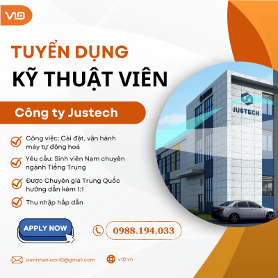 Công ty JUSTECH tuyển dụng Kĩ thuật viên: ✔️ Yêu cầu: Sinh viên Nam chuyên ngành tiếng Trung ✔️ Công việc: Cài đặt và vận hành thử các loại máy...
