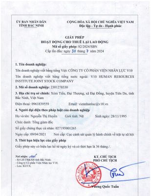Công ty Cổ phần Viện Nhân lực V10 tự hào là một trong những đơn vị hàng đầu trong lĩnh vực hợp tác đào tạo sinh viên thực tập và điều tiết nguồn nhân lực cho các doanh nghiệp trong nước và FDI tại Việt Nam.