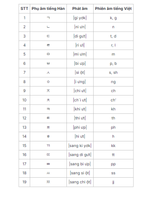 Bảng chữ cái tiếng Hàn có 19 phụ âm cơ bản và 11 phức tự phụ âm: